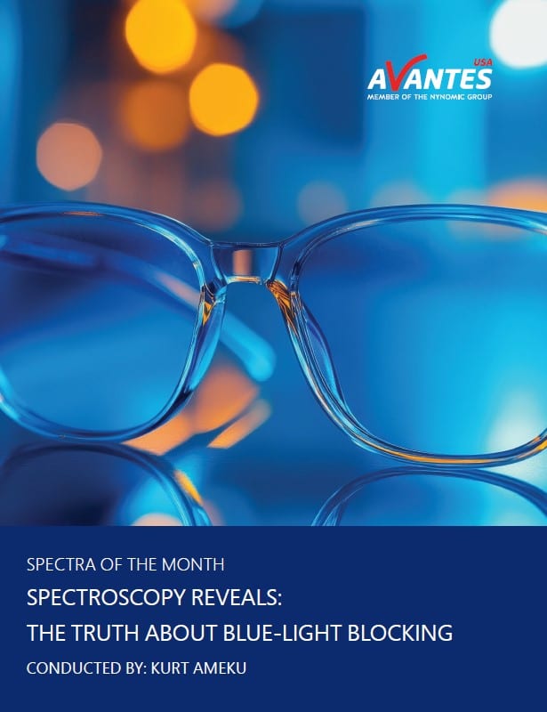 Using the AvaSpec-NXS2048CL (Nexos) spectrometer, our team captured real-world data to quantify how much blue light each solution filters, and to explore the optical science behind those coatings and settings.